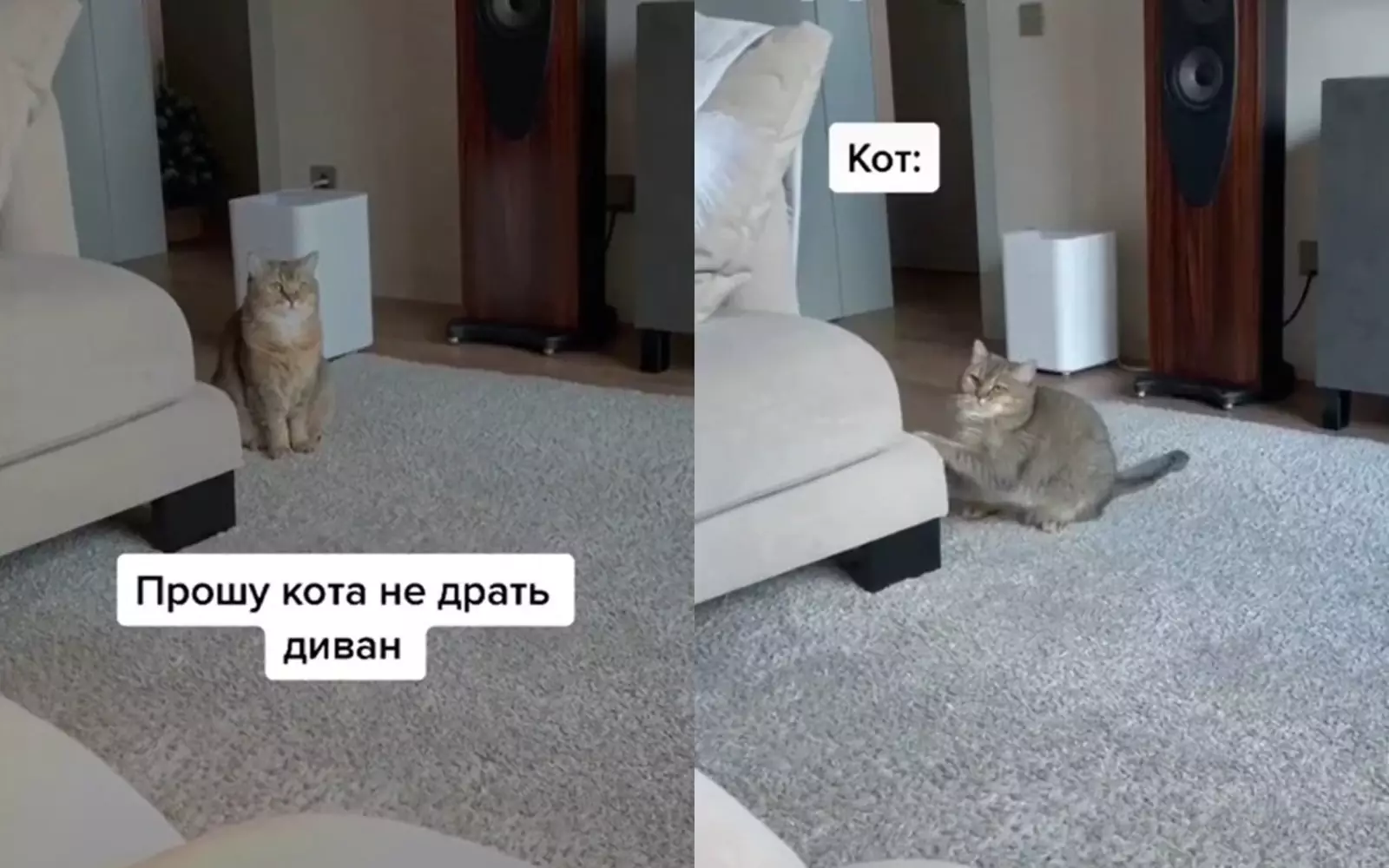 Ролик с непослушным любителем портить мебель собрал почти миллион просмотров и сотни комментариев.