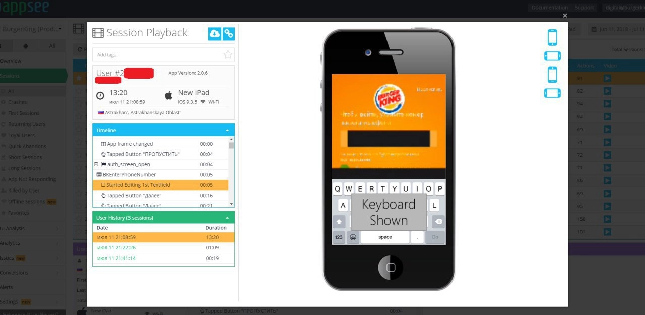 Приложение Burger King действительно подключено к одной из самых известных во всем мире и защищенных аналитических платформ — AppSee, которая позволяет выявлять технические проблемы и другие „узкие“ места в работе приложения. Эта система не имеет ничего общего со сбором персональных данных, более того, ни мы, ни специалисты AppSee не видят персональных данных, они приходят на сервер в обезличенном виде, — подытожил специалист.