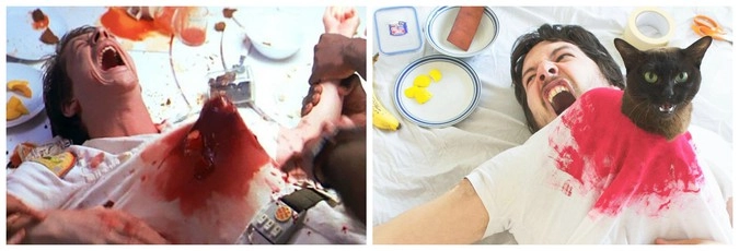 В своём инстаграме владельцы кошек устраивают своего рода викторину, где подписчики должны угадать из какого фильма они воссоздали сцену. Пока у них всего шесть фотографий, но судя по количеству подписчиков они будут продолжать в том же духе.