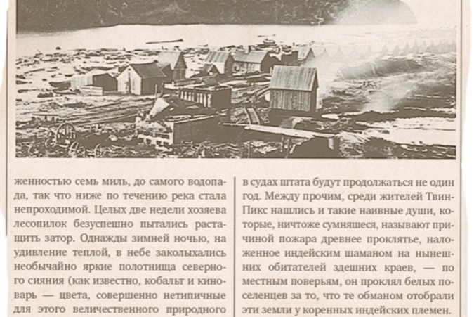 Я изучил историю нескольких десятков выборочно взятых городов и поселений, сходных с Твин-Пикс, однако же ни в одном из них не наблюдается такого обширного скопления невероятных событий и трагических происшествий.