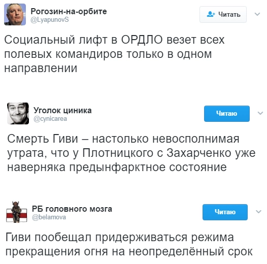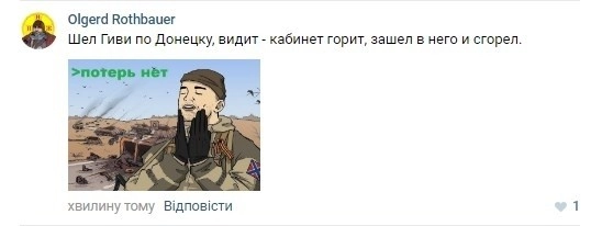 Однако, если россияне публикуют слова скорби о погибшем ополченце, который стоял на обороне Иловайска в 2014 году, то украинская сторона массово злорадствует по поводу смерти Гиви и открыто приветствует продолжение вооруженного конфликта с республиками.