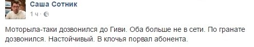 «Говорят, Гиви просто разорвало от тоски по Мотороле. Не расставайтесь с любимыми!» — присоединился к глумливым комментариям украинский телеведущий Сергей Притула.