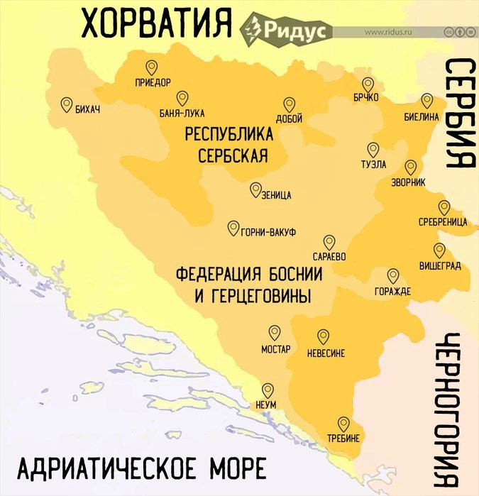 Вторая угроза для целостности БиГ — это хорватские представители во власти, которые хотят отделить Западную Герцеговину от Федерации БиГ. Напомним, что в результате Дейтонского мирного договора, БиГ по своей конституции является государством трех конститутивных народов — боснийцев, сербов и хорватов. У них нет единого президента, и государством руководит президиум из трех представителей трех конститутивных народов. В результате, сербские представители годами тормозят все попытки боснийской стороны попасть в НАТО или ЕС.