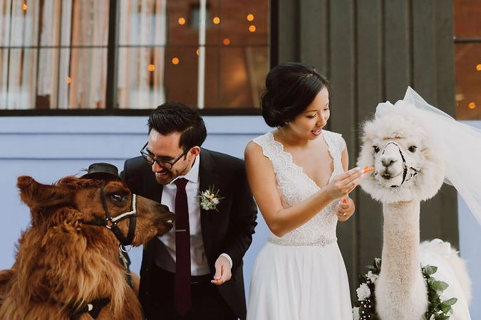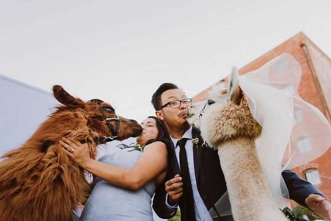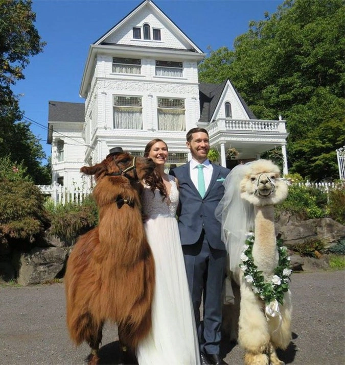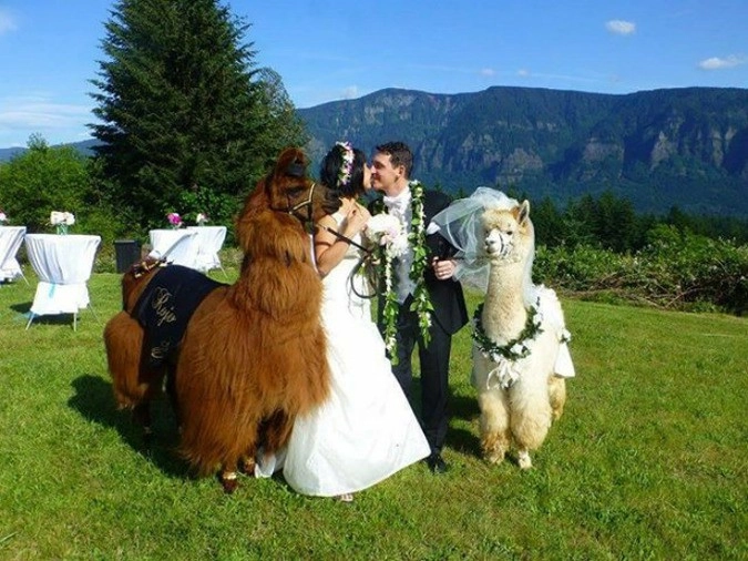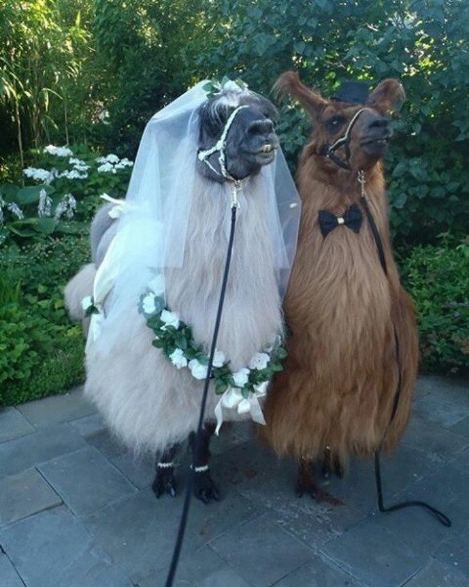 Актуальную услугу для молодожёнов запустила американская некоммерческая организация «Mtn Peaks Therapy Llamas & Alpacas». Лама и альпака в нарядных костюмах жениха и невесты придут к вам на торжество и украсят ваши свадебные фотографии. Правда, услуга «Свадебные ламы» работает пока только в Вашингтоне, Портленде и Ванкувере. А интернет-пользователи уже окрестили новую моду идеальной услугой для социопатов — не хочешь приглашать на свадьбу людей, пригласи лам! Некоторые так и делают.