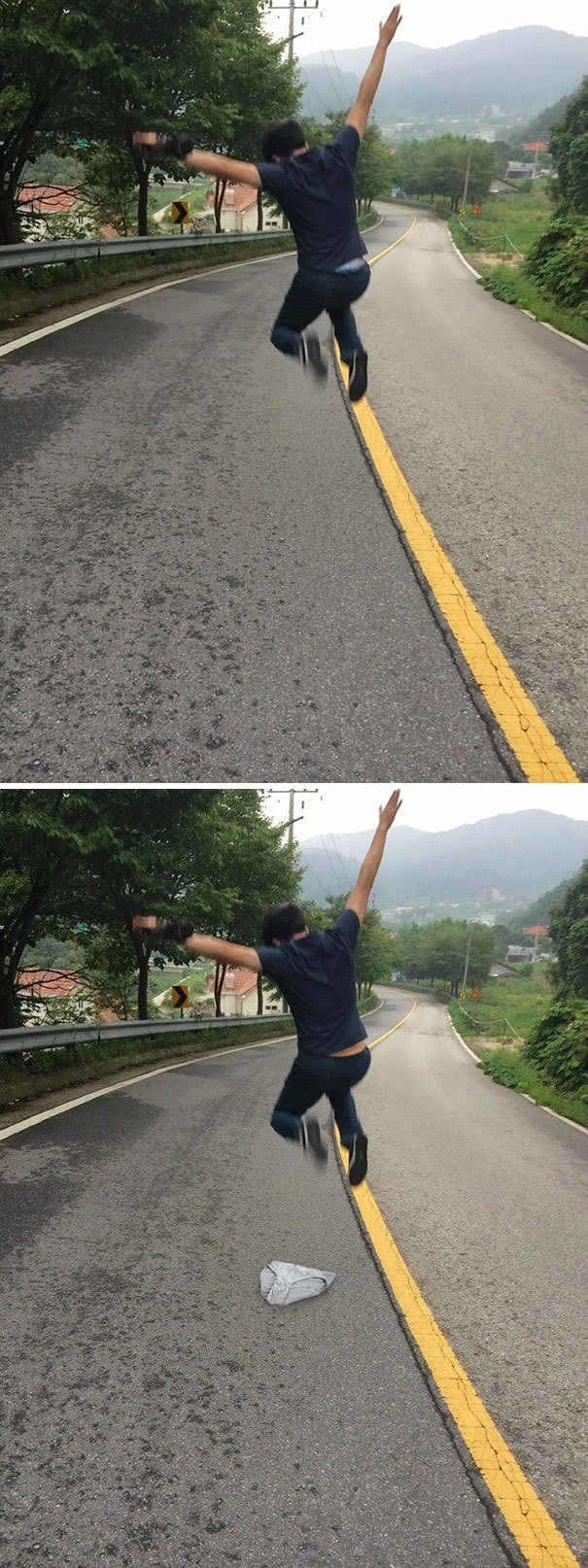 «Я классно прыгнул, но кадр портит выглядывающее бельё. Вы можете удалить его?»