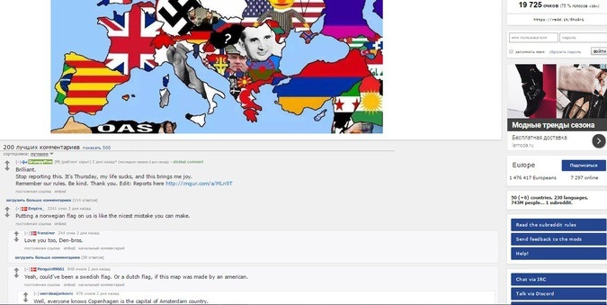 Пост под названием «Is this a correct representation of Europe?», что в переводе значит «Это правильное представление о Европе?» набрал почти 20 тысяч голосов, 75% из которых высказались «за». В комментариях одни пользователи отметили внимательность и остроумие автора-тролля, другие посчитали карту оскорбительной и успели пожаловаться на пост, как на разжигающий рознь.