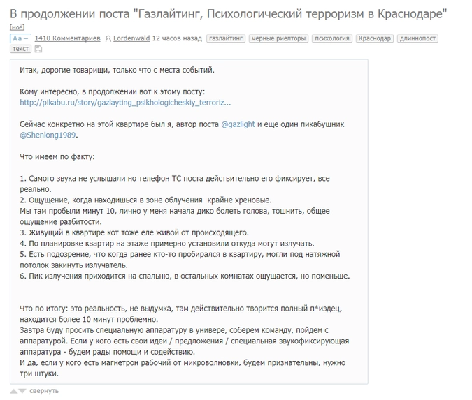 Пользователь сайта Pikabu из Краснодара пожаловался на соседей, которые пытаются сделать его жизнь невыносимой довольно необычным способом — с помощью высокочастотного шума.
