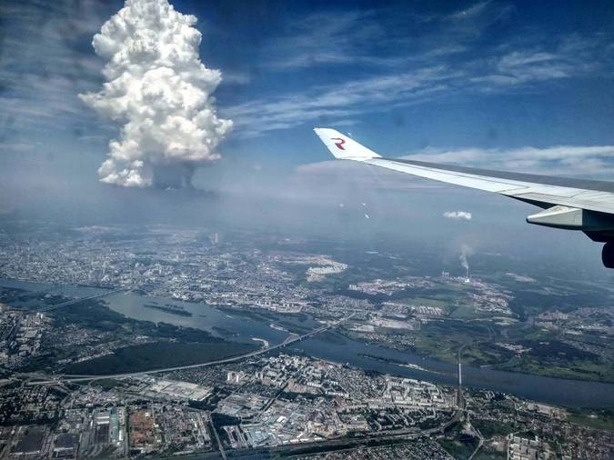 В Instagram очевидец выложил снимок облака над Новосибирском, сделанный с борта самолета. Одному из подписчиков это облако напомнило ядерный взрыв.