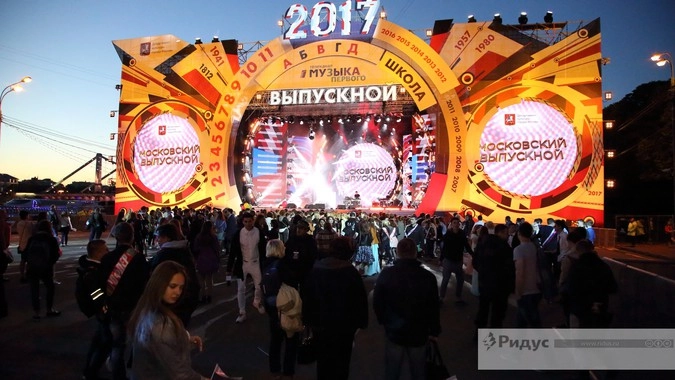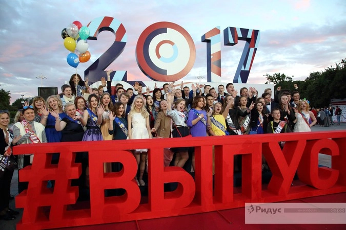 Тема выпускного 2017 года — «Эпохи Москвы». Выпускники прошли через центральный вход парка по красной дорожке и отправились в путешествие по тематическим площадкам, посвященным истории столицы от XII столетия до современности.