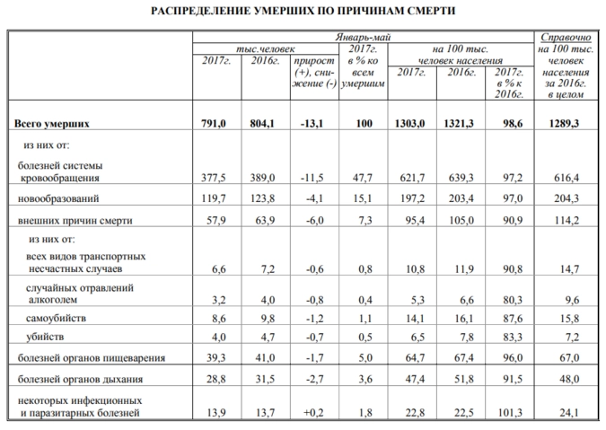 В сравнении с аналогичным периодом прошлого года в России наблюдалось сокращение рождаемости и смертности. Однако число умерших все равно превышает число родившихся — в 1,2 раза, в отдельных регионах страны даже больше. Основной причиной смертей среди российских граждан остаются болезни системы кровообращения (377,5 тысячи человек). На втором месте — онкология (119,7 тысячи человек).