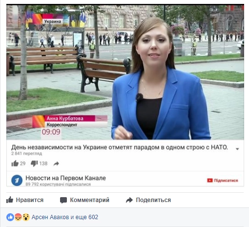 Последние семь сюжетов Анны Курбатовой касались ситуации на Украине. Особое возмущение украинских пользователей Сети вызвал сюжет о Дне независимости в Киеве.