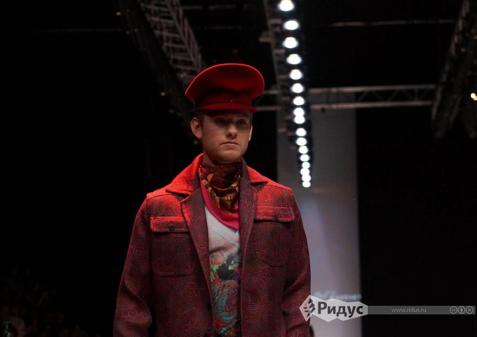 Мужские образы также удивляют богатством головных уборов и шейных платков. В каждом комплекте присутствует хотя бы одна вещь, выполненная из жаккардовой ткани. Также Вячеслав Зайцев представил и свадебные наряды, декорированные ручной вышивкой.