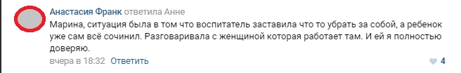 Все родители на стороне воспитателя. История с мальчиком выдуманная,утверждает Ксения, мама одногруппницы «пострадавшего» мальчика.