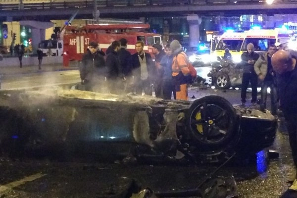 Не справившись с управлением, юный гражданин Израиля врезался в бордюр и вылетел на встречку. Горящий суперкар протаранил Volvo и Ford, находившиеся рядом.