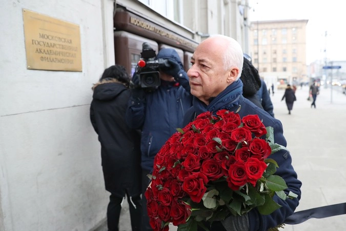 Художественный руководитель и главный дирижер Национального филармонического оркестра России и Государственного камерного оркестра «Виртуозы Москвы» Владимир Спиваков перед церемонией прощания с оперным певцом Дмитрием Хворостовским