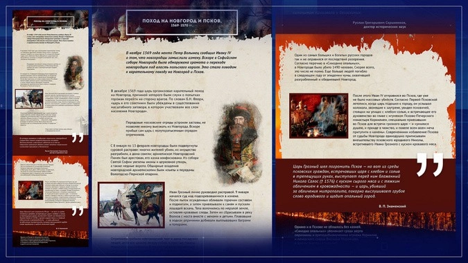 «Россия — Моя история»: «У нас существует отдельный стенд, посвященный опричнине. Здесь размещены статьи о Малюте Скуратове, карательном Новгородском походе, собственно об опричнине, об убийстве святителя Филиппа и преподобномученика Корнилия».
