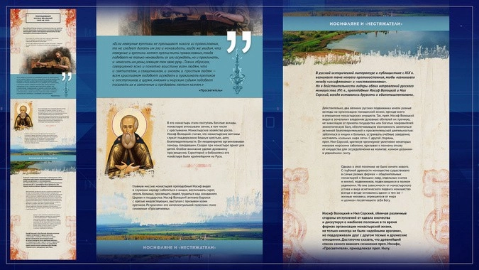 «А насчет разногласий внутри Церкви, то в экспозиции, посвященной периоду правления Ивана III, имеется отдельная статья об отношениях преподобных Иосифа и Нила. В ней же рассказано о так называемом споре «стяжателей и «нестяжателей».