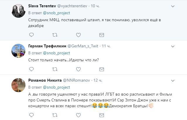 Из комментариев в блогосфере следует, что на самом деле в признание однополых браков в России никто не поверил, списав все на выдумки журналистов и недосмотр бюрократов.
