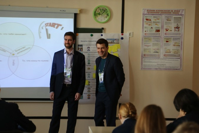 По условиям «социального дня» у каждого из них было по 20 минут на беседы со школьниками. Впрочем, наши конкурсанты не стали делить время пополам, а провели урок совместно, передавая друг другу слово и пытаясь вовлечь школьников в интерактив.