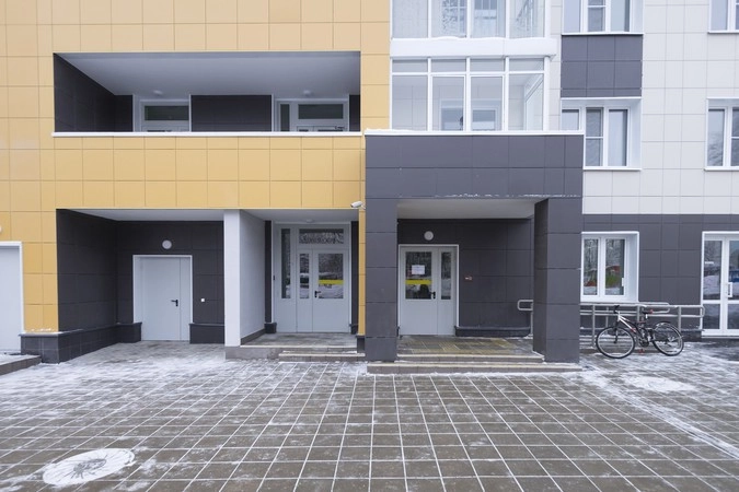 Первый этаж не жилой. По программе реновации нам обещали, что подъезды будут на одном уровне с улицей, но тут не получилось, поскольку дом начали строить ещё до начала программы. Напомню, что программа стартовала 1 августа 2017 года. Но в любом случае крутых лестниц тут нет, и есть пандус.