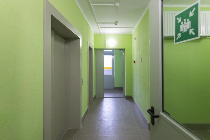 Лифтовый холл самый обычный, как во многих современных домах. Также в доме установлена: противодымная вентиляция с дымоудалением и подпором воздуха, сигнализация (пожарные извещатели).