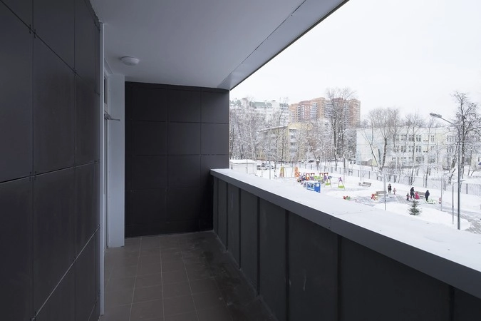 Большой общий балкон. Оптимально, если именно сюда жильцы будут выводить внешние блоки кондиционеров, чтобы не портить красивый фасад дома. Вообще программа реновации предполагает специальные ящики, однако, как сказано ранее, тут этого не проектировали. Уже выполнено благоустройство двора.