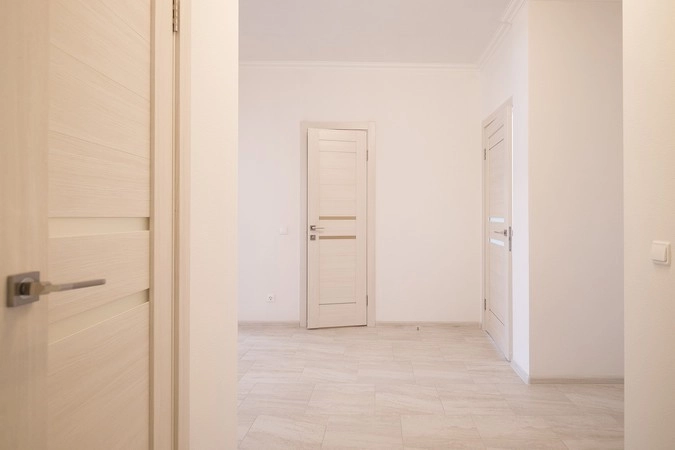 Проходим в квартиру. Всё как обещали — большой просторный холл, на полу кафельная плитка, на стенах флизелиновые обои, которые при необходимости можно легко перекрасить.