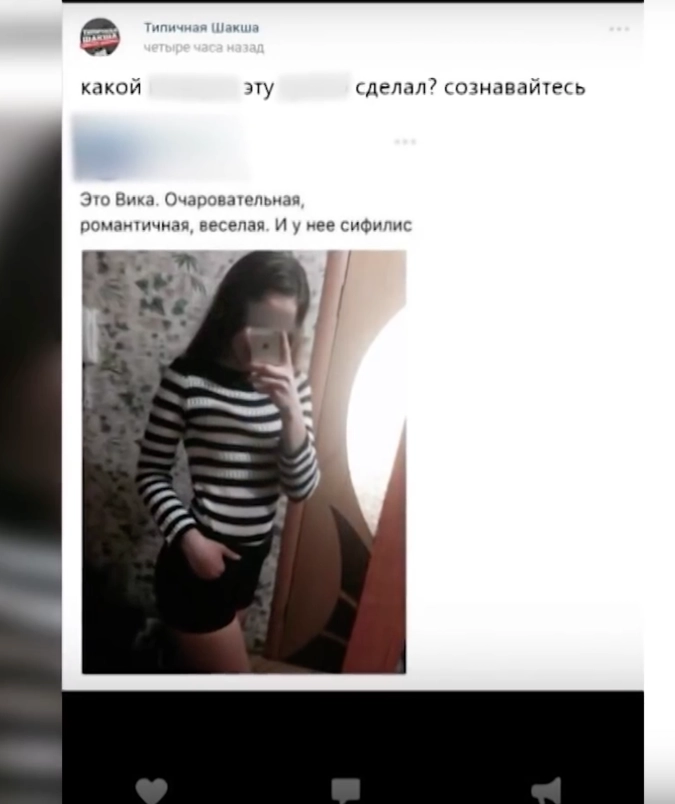 В Уфе школьники устроили травлю однокласснице. Дети разместили в соцсетях ее фотографию с подписью «Это Вика. Очаровательная, романтичная, веселая. И у нее сифилис».