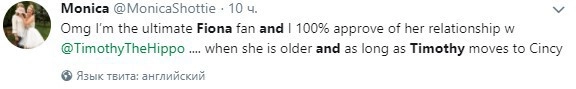 За любовной перепиской животных в Сети следят внимательнее, чем за героями мыльных опер. Многие пользователи надеются, что у Тимоти все же получится растопить сердце Фионы. Другие шутят, мол им сначала нужно убедиться, что гиппопотам действительно любит Фиону, а не ее «легендарный статус».