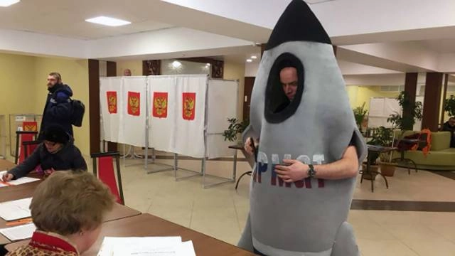 Житель деревни Горбунки (Ленинградская область) пришел на выборы в самодельном костюме межконтинентальной ракеты «Сармат». Члены участковой комиссии подтвердили личность молодого человека и выдали ему бюллетень.