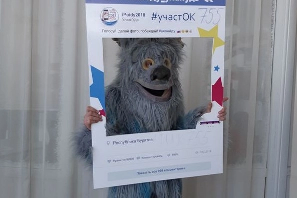 В Бурятии на избирательный участок забрел медведь. Мужчине в массивном костюме не удалось поместиться в кабинке для голосования целиком. Он поставил отметку, стоя в дверях кабинки, после чего опустил бюллетень в урну. Участники избиркома устроили фотосессию с бурым мишкой.
