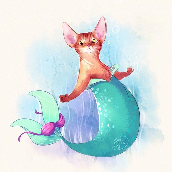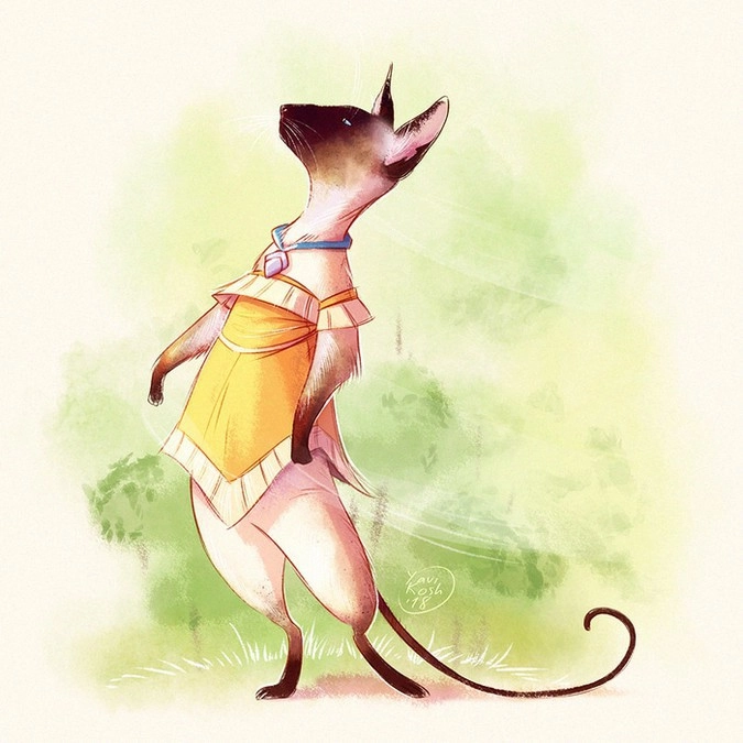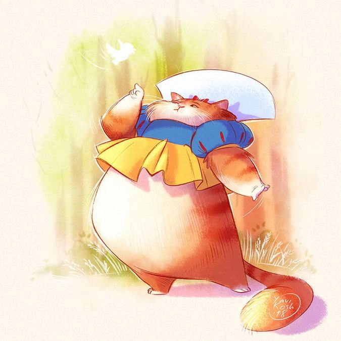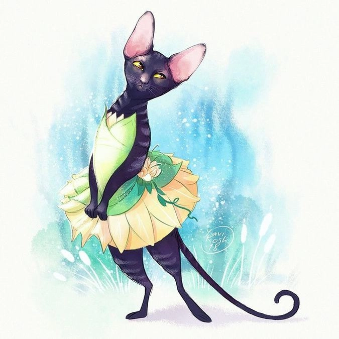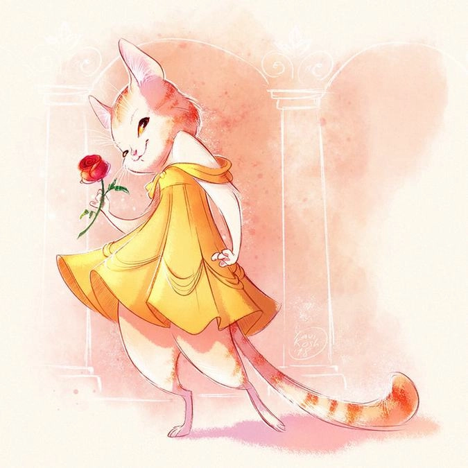 Российский иллюстратор Виктория Кошелева представила более невинную фантазию. Она нарисовала принцесс Диснея в образах кошечек. Получилось довольно мило.