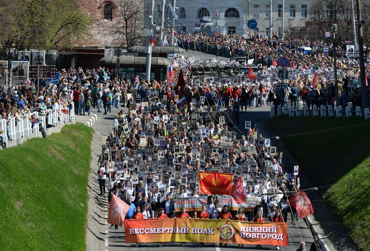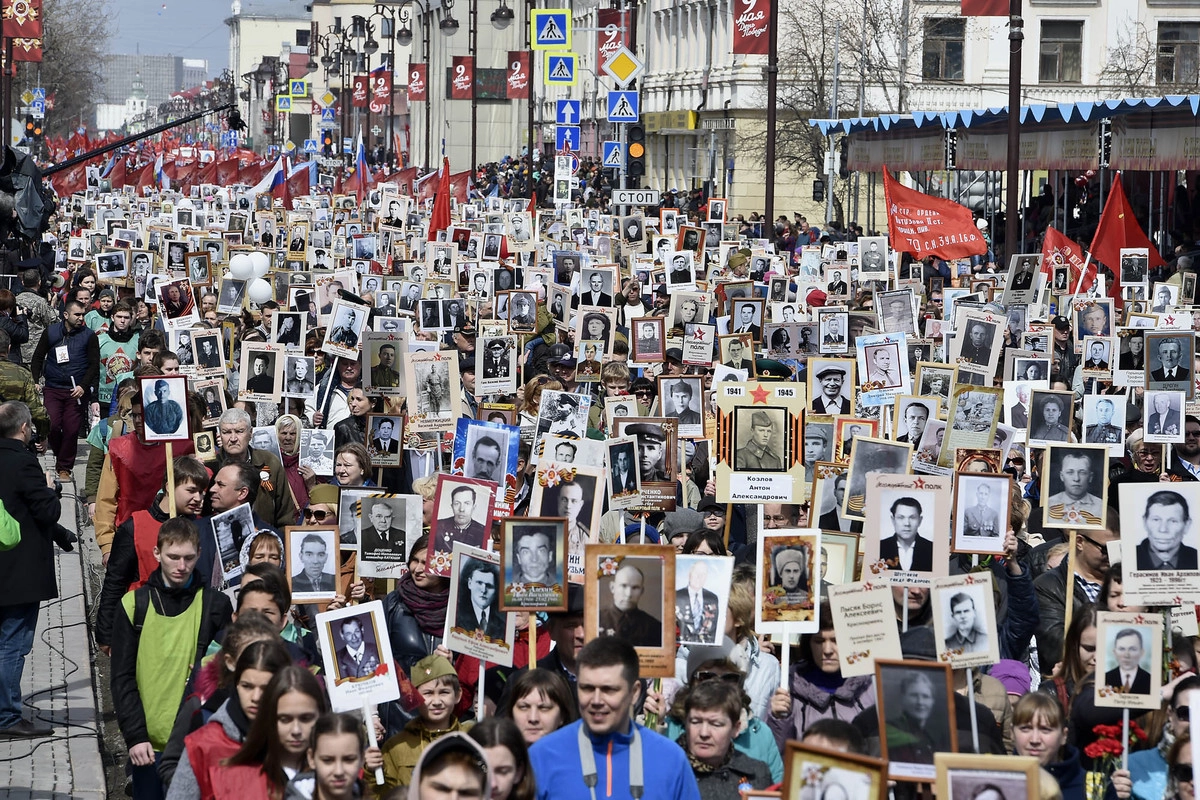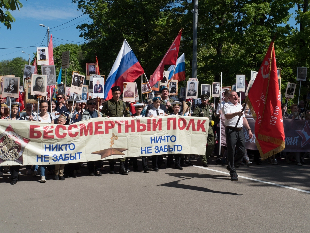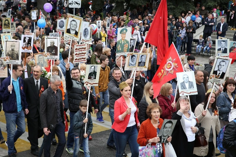 По всей России, от Калининграда до Камчатки, прошли шествия «Бессмертного полка»: сотни тысяч человек вышли на центральные городские улицы с портретами своих героических родственников, участвовавших в Великой Отечественной войне.