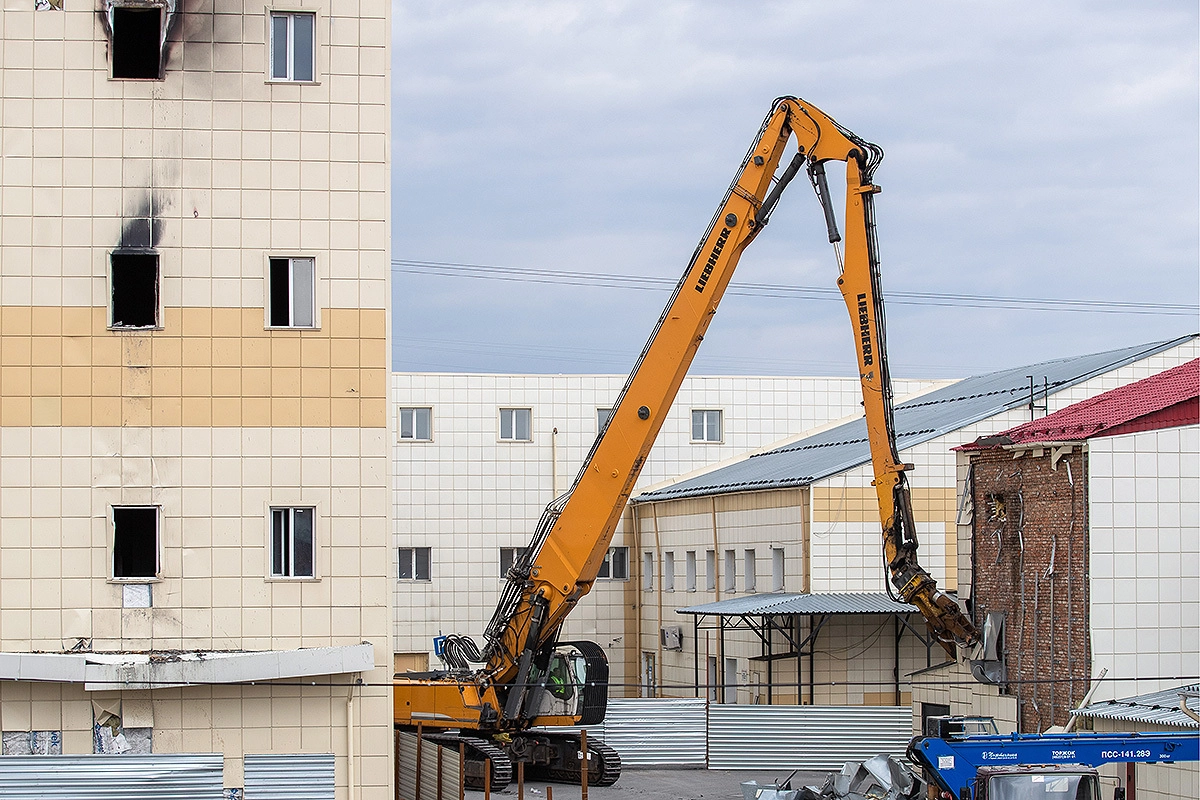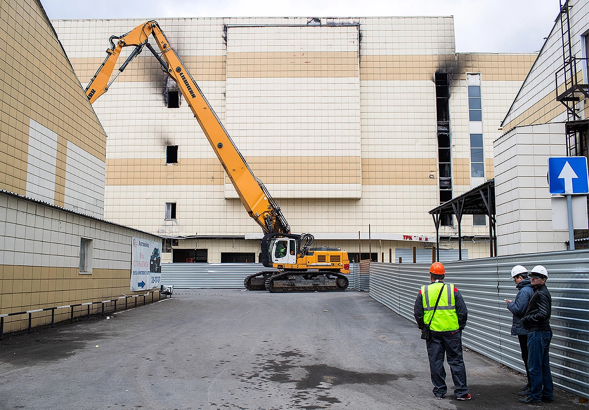 Сегодня рабочие начали демонтаж сгоревшего в Кемерово торгового центра «Зимняя вишня».