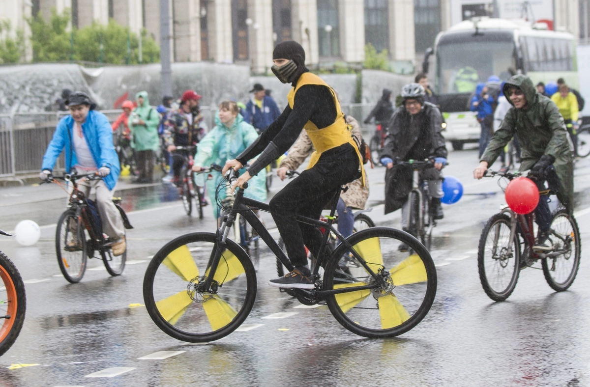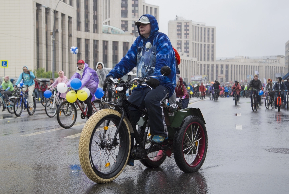 Организатор велопарада, координатор движения Let’s bike it! Владимир Кумов отметил, что этот велопарад — самый дождливый среди всех проведенных велопарадов в Москве.