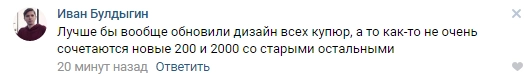 Кого-то из пользователей расстроило цветовое решение новой купюры.