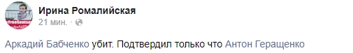 Переехавший в Киев российский журналист Аркадий Бабченко был убит. Об этом сообщила журналистка «Громадьске» Ирина Ромалийская.