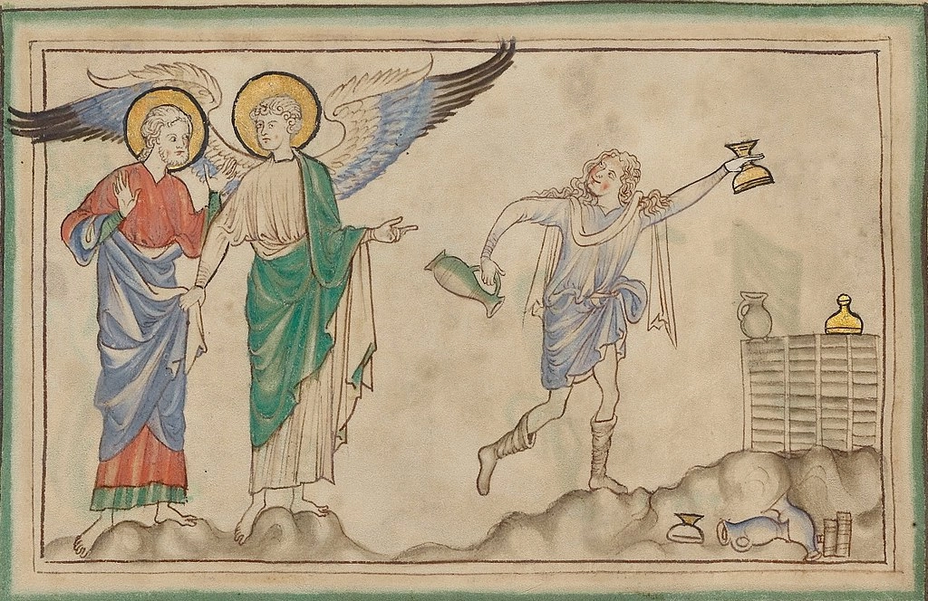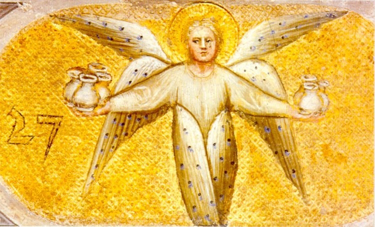 Про семь ангелов с семью чашами Гнева божьего мы говорили в прошлый раз. Здесь эти чаши в виде сосудов изображены.