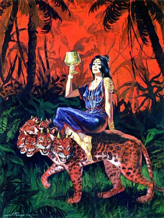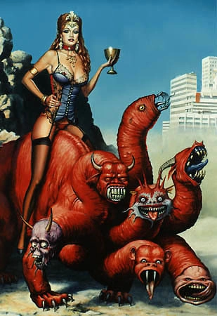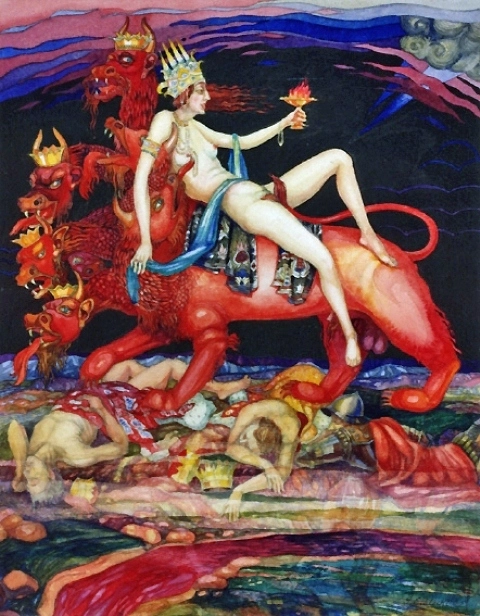 И вот в тексте книги наконец появляется хрестоматийный образ Блудницы, сидящей на звере.