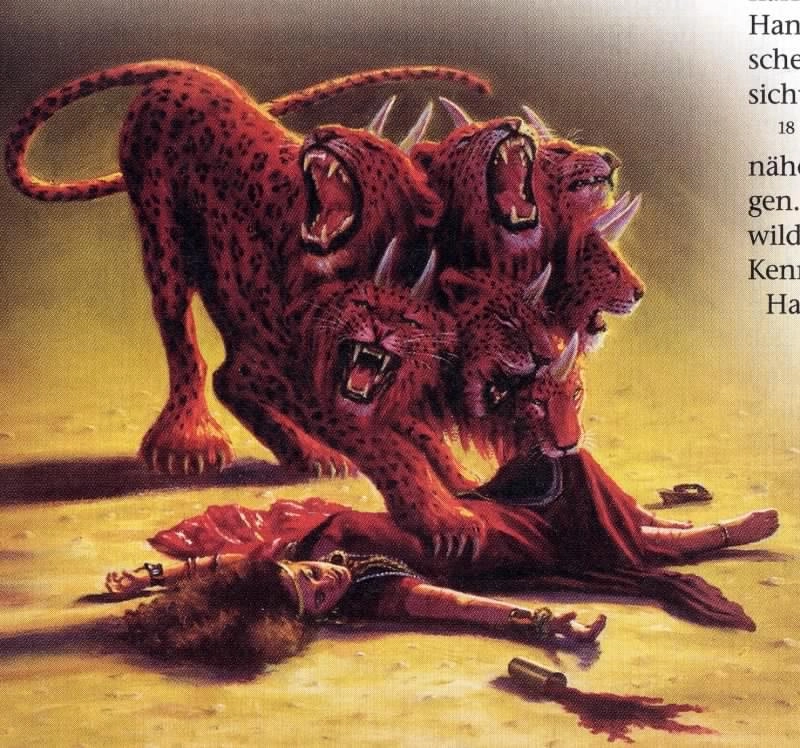 Я увидел женщину, сидевшую на красном звере, покрытом кощунственными именами.
