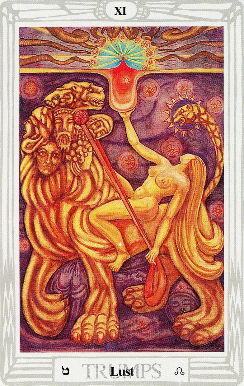 Леди Фрида Харрис, «Вожделение» (1938--43), воспроизведено по колоде Таро Тота (U.S. Games Systems).
