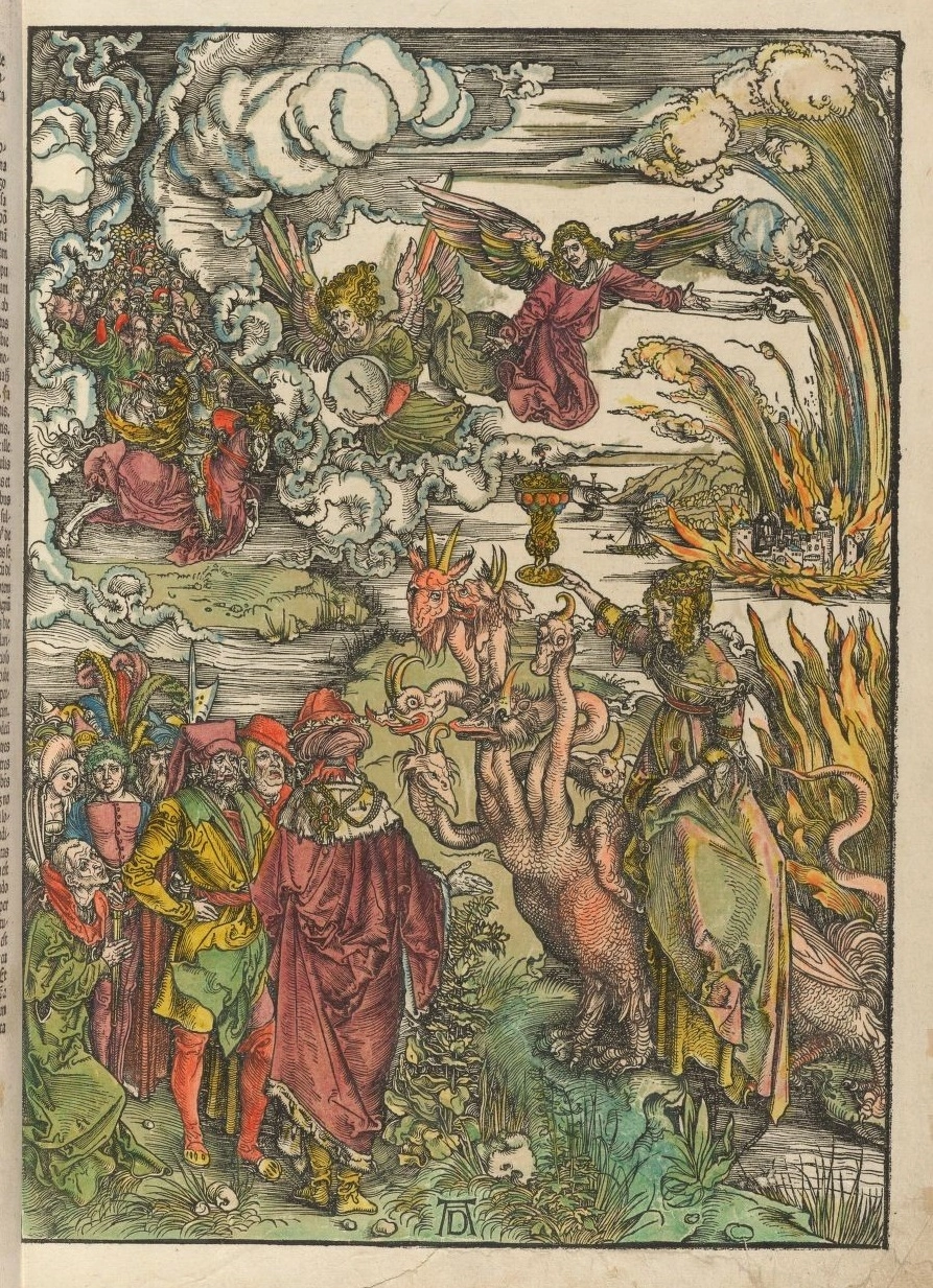 А это «Вавилонская блудница» Дюрера, 1498. Тут тоже разобраться в деталях -- мозг сломать.