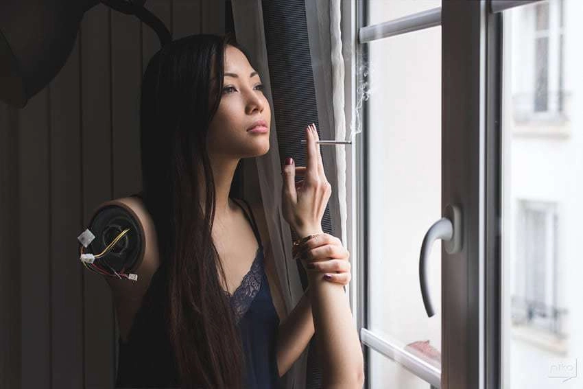 «В этом фотопроекте я пытаюсь проецировать себя на интимность повседневной жизни, укоренившейся в мире, где граница между человеком и машиной размыта», — рассказал Николя HuffPost.