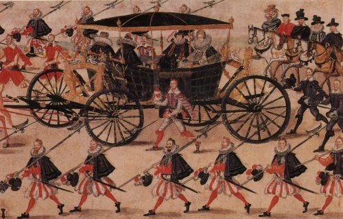 Карета и процессия в начале 17 века («Стокгольмский свиток»)