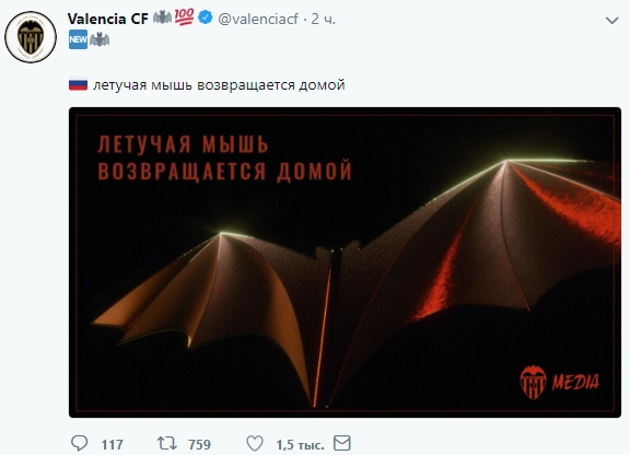 «Летучая мышь возвращается домой», — написано по-русски в испаноязычном аккаунте клуба.