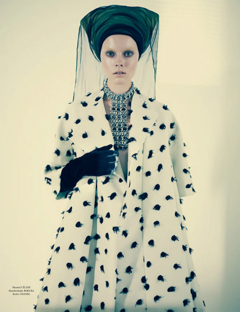 Обмотка волосьями подсмотрена у леонардовской «Дамы с горностаем», но вышло паршивенько. Почему в фотосессии употреблено имя Караваджо, непонятно, — он женщин игнорировал принципиально.