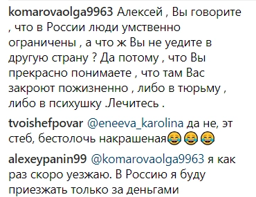 В ответ подписчики поинтересовались, почему же он тогда не уедет из страны. На это Панин заявил, что «как раз скоро» уезжает, а в Россию будет приезжать «только за деньгами».