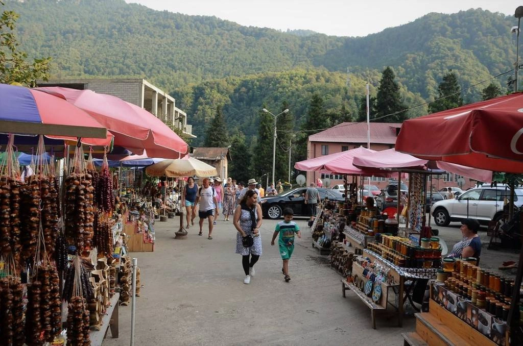 От Батуми до водопадов ехать 30—40 минут от силы. И вы попадаете в туристическое гетто с бесконечными сувенирными лавками. К чести грузин надо сказать, что бегать за вами и хватать на рукав «Купи, купи» никто не будет. Это вам не Египет.