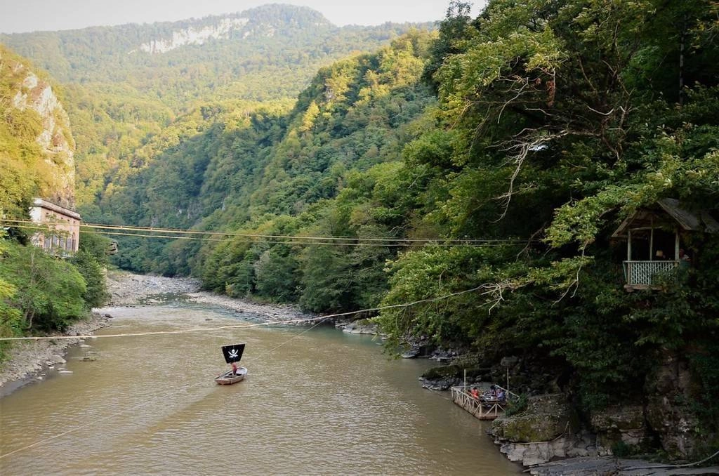 Суть лодочки за 5 лари такова: с нее вам откроются виды на ГЭС и на Мост царицы Тамары, которые вы не получите с берега.