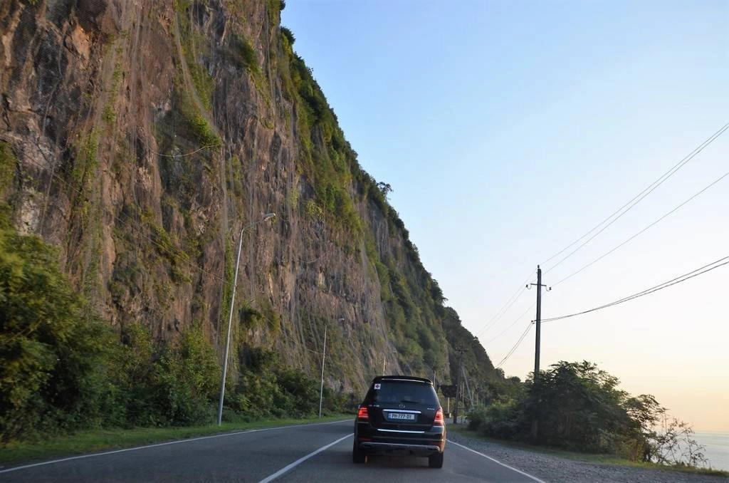 Последние пару километров перед границей скалы вплотную подходят к Черному морю и дорога петляет над обрывом.